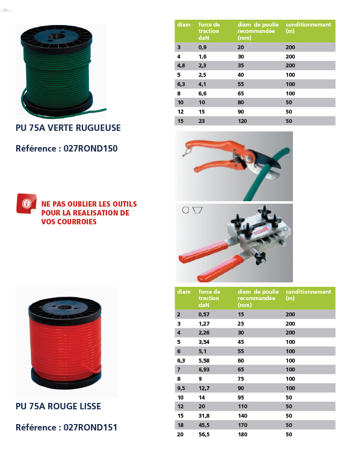NE PAS OUBLIER LES OUTILS POUR LA REALISATION DE VOS COURROIES