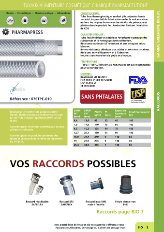 Raccords réutilisables, Sertissage ou Colliers de serrage inox BIO 2