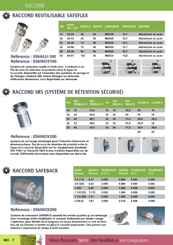 RACCORD SAFEBACK DIAM DIAM A TOLERANCE DIAM B TOLERANCE TOLERANCE