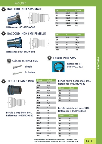Raccords réutilisables, Sertissage ou Colliers de serrage inox BIO 8