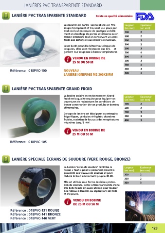LANIÈRE PVC TRANSPARENTE STANDARD Existe en qualité alimentaire