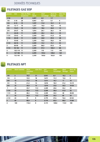 pouces diam nominal diam nbre filet pas diam diam diam du