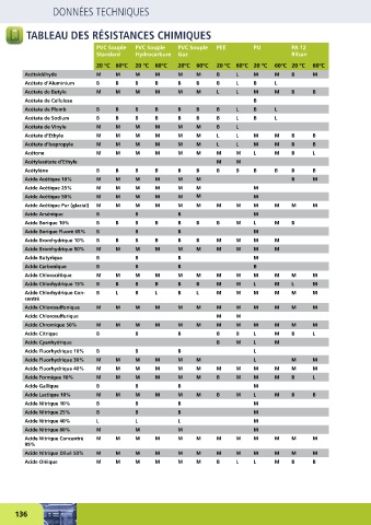 TABLEAU DES RÉSISTANCES CHIMIQUES