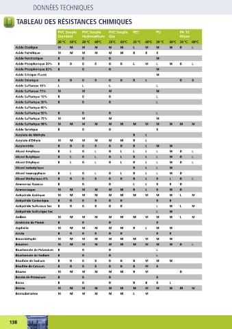 TABLEAU DES RÉSISTANCES CHIMIQUES