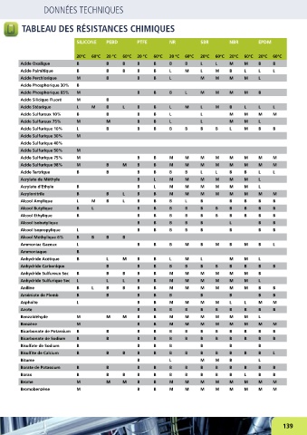 TABLEAU DES RÉSISTANCES CHIMIQUES