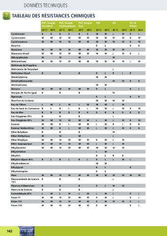 TABLEAU DES RÉSISTANCES CHIMIQUES