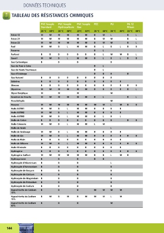 TABLEAU DES RÉSISTANCES CHIMIQUES