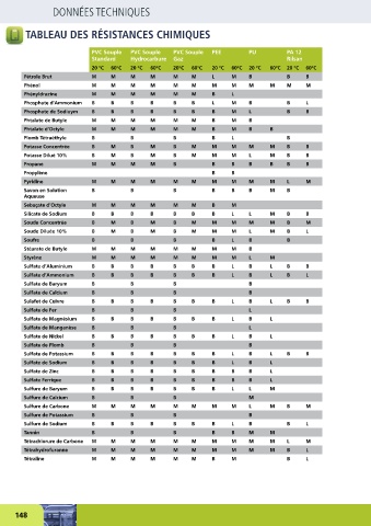 TABLEAU DES RÉSISTANCES CHIMIQUES