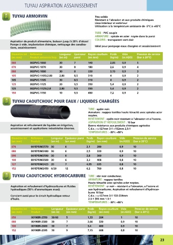 Aspiration et refoulement d’hydrocarbures et fluides REVÊTEMENT : cr noir – résistant a l’abrasion, a l’ozone et