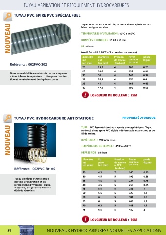 TUYAU PVC SPIRE PVC SPÉCIAL FUEL Tuyau opaque, en PVC nitrile, renforcé d’une spirale en PVC