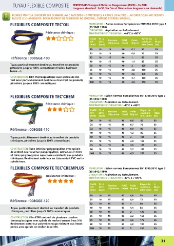 sur P.V.C. à 20° (en mm) (en m) FLEXIBLES COMPOSITE TEC’CHEM FABRICATION : Selon normes Européennes EN13765:2010 type 3