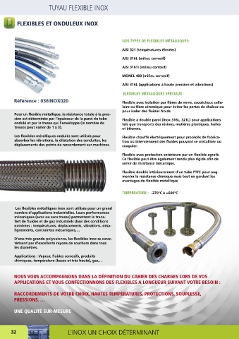 sion est déterminée par l’épaisseur de la paroi du tube Flexible à double paroi (Inox 316L, 321L) pour applications