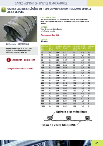 GAINE FLEXIBLE ET LÉGÈRE EN TISSU DE VERRE ENDUIT SILICONE SPIRALE