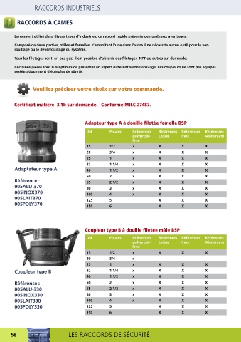 58 LES RACCORDS DE SÉCURITÉ