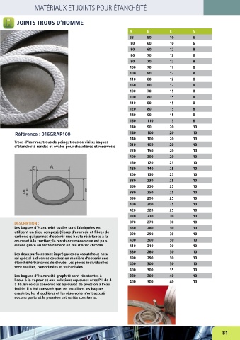 d’étanchéité rondes et ovales pour chaudières et réservoirs 210 150 20 10